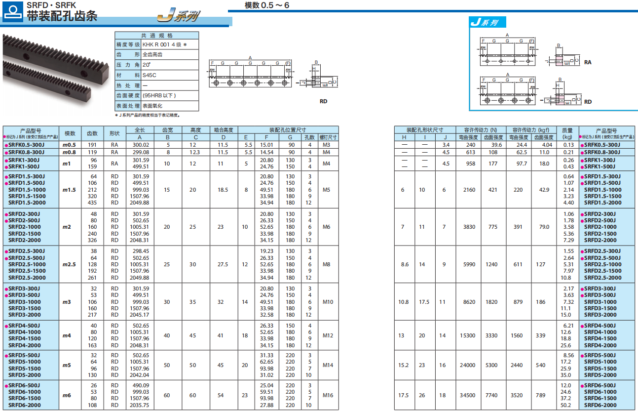 富有高強(qiáng)度、高精度和高性價(jià)比的淬火磨齒齒條系列。 還備有 J 系列成品。 |
