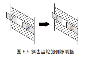 通過減小齒輪的中心距,達到調(diào)整徑向側(cè)隙的目的,使齒輪側(cè)隙變小。