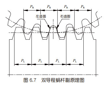 圖6.7示意了雙導(dǎo)程蝸輪蝸桿副的原理。