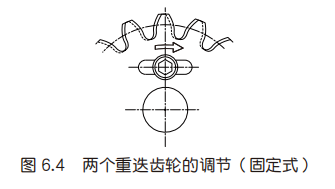 將兩個重疊齒輪相互的輪齒相位關(guān)系調(diào)整固定,使側(cè)隙減小。原理示意在圖6.4中。
